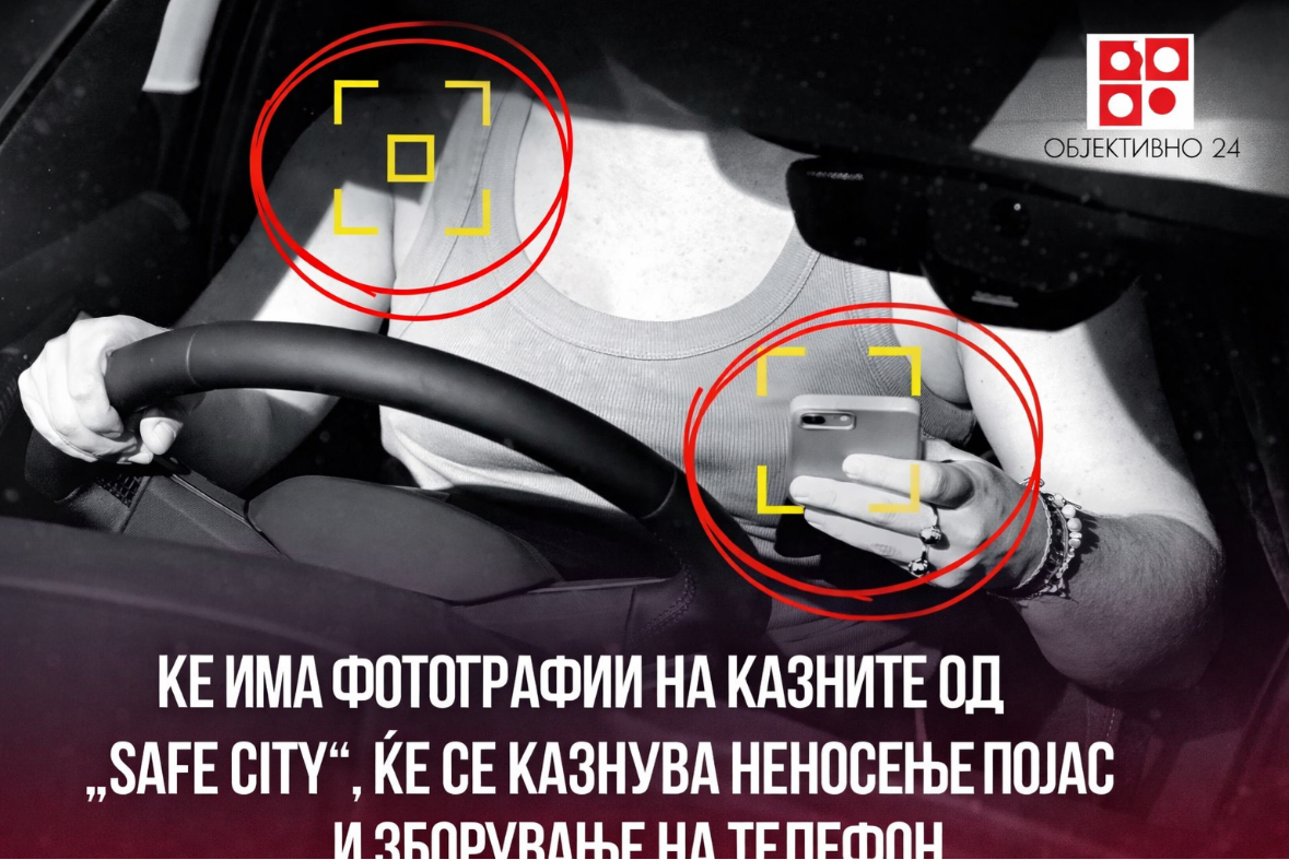 ЌЕ ИМА ФОТОГРАФИИ НА КАЗНИТЕ ОД „SAFE CITY”, KE СЕ КАЗНУВА НЕНОСЕЊЕ ПОЈАС И ЗБОРУВАЊЕ НА ТЕЛЕФОН