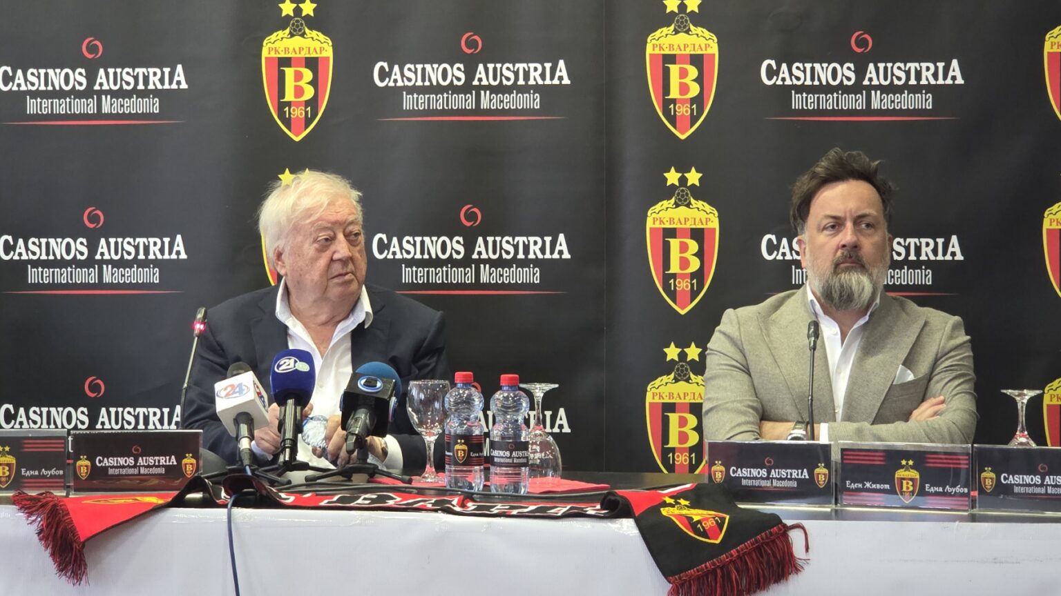 Ова е убав ден, потпишавме соработка со Делфино Рентакар кој е мал спонзор, ама ние не ги делиме никогаш. Првпат во историјата Вардар добива свој авто-спонзор. Нема разлика во мали и големи, ама кога ќе добиете најголем спонзор во историјата на Вардар, чест ми е што денес потпишавме договор со Казинос Австрија Интернешионал. Тоа не е договор од денес за утре. Се надевам дека ќе потрае и во иднина. Оваа компанија има многу фирми, спонзорира многу во спортот секаде. Почнувајќи од Иџе, па до кошаркарски и ракометни клубови, како општествено одговорна компанија помагаат многу, а имаат и многу игралишта. Веројатно по подолг период, компанијата увиде што е тоа што за нив е предизвик и би било најдобро да го спонзорираат. Најдоброто во Македонија е ракометниот бренд Вардар 1961. Многу сум благодарен, ова ќе биде голем ветер во грб за нас за да се обидеме да се вратиме на старите патеки. Немаме илузија дека можеме да ги повториме 2017 и 2019 година, ама одиме чекор по чекор. Ќе се обидеме да достигнеме максимум, а тоа е да бидеме во топ десет во Европа. Има преку 20 екипи со над 15 милиони евра буџет, па реално не можеме да се бориме со нив. Ние имаме знаење и слух да најдеме играчи кои сакаат да се докажуваат и борат, а не само да дојдат и да земат пари. Тоа е нашата умешност, ама такво нешто не би било можно без верните поддржувачи. Ние имаме доста спонзори, ама еден се издвојува како најголем и најценет, а тоа е Казинос Австрија“, изјави Михајловски.