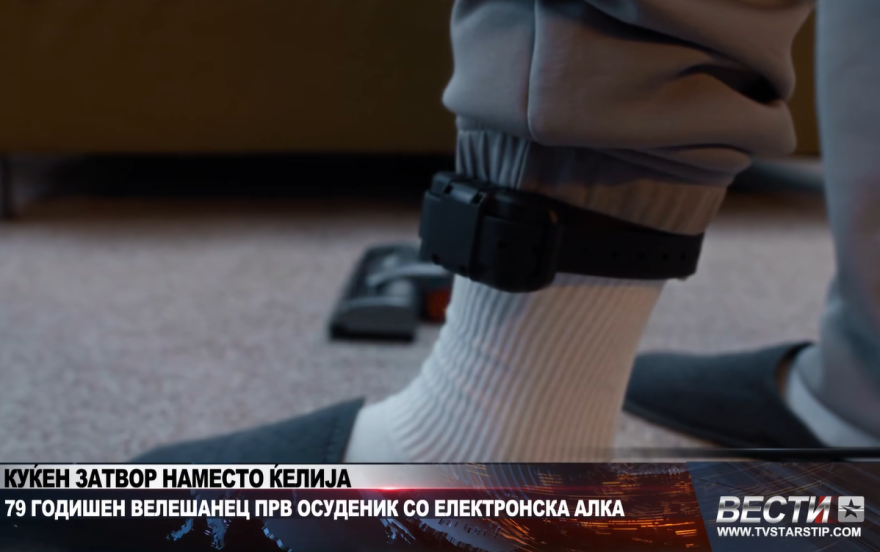 79-годишен жител на Велес ќе биде првото лице во државата кое ќе ја издржува затворската казна со електронска алка на ногата. Тој е осуден на три месеци куќен затвор за кривично дело полово вознемирување, согласно член 190-а став 2 од Кривичниот законик, пренесува ТВ Стар.