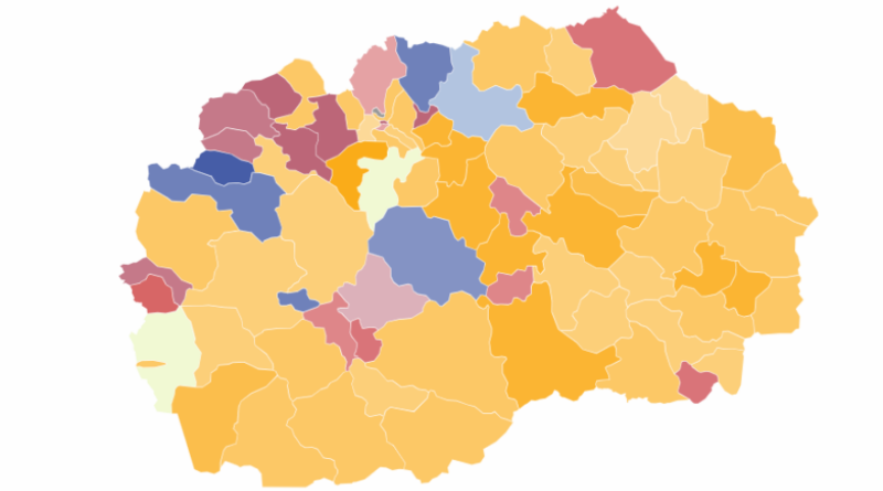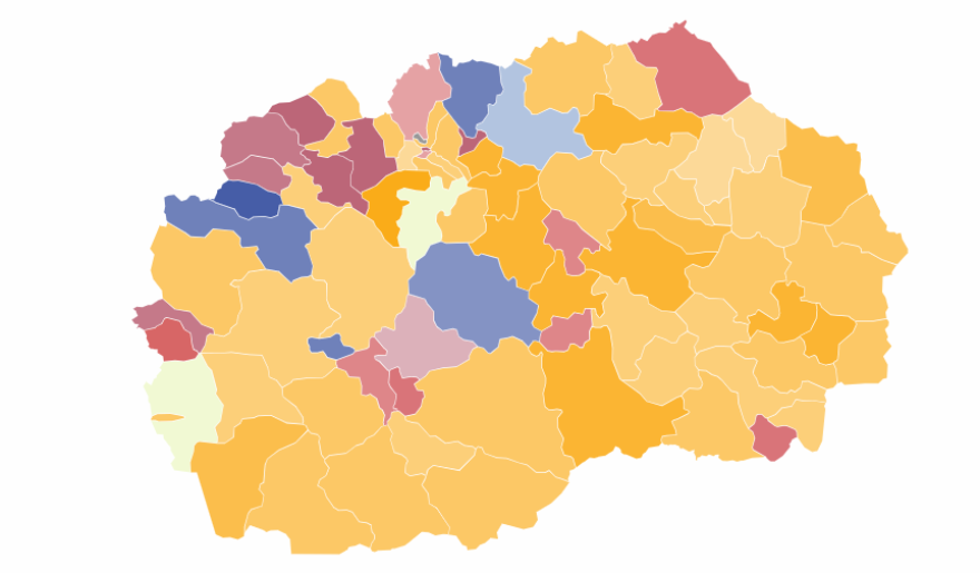 Еве како се обоени општините во Македонија по првиот круг од локалните избори