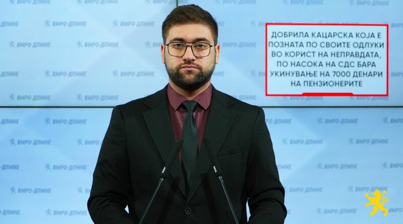 Манасиевски: Добрила Кацарска која е позната по своите одлуки во корист на неправдата, по насока на СДС бара укинување на 7000 денари на пензионерите