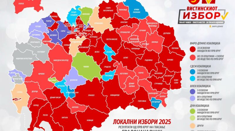 Николоски: Македонија обоена во црвено, победа на ВМРО-ДПМНЕ во првиот круг во 33 општини, ДУИ е декласиран, оставка за Венко