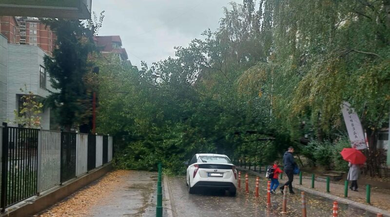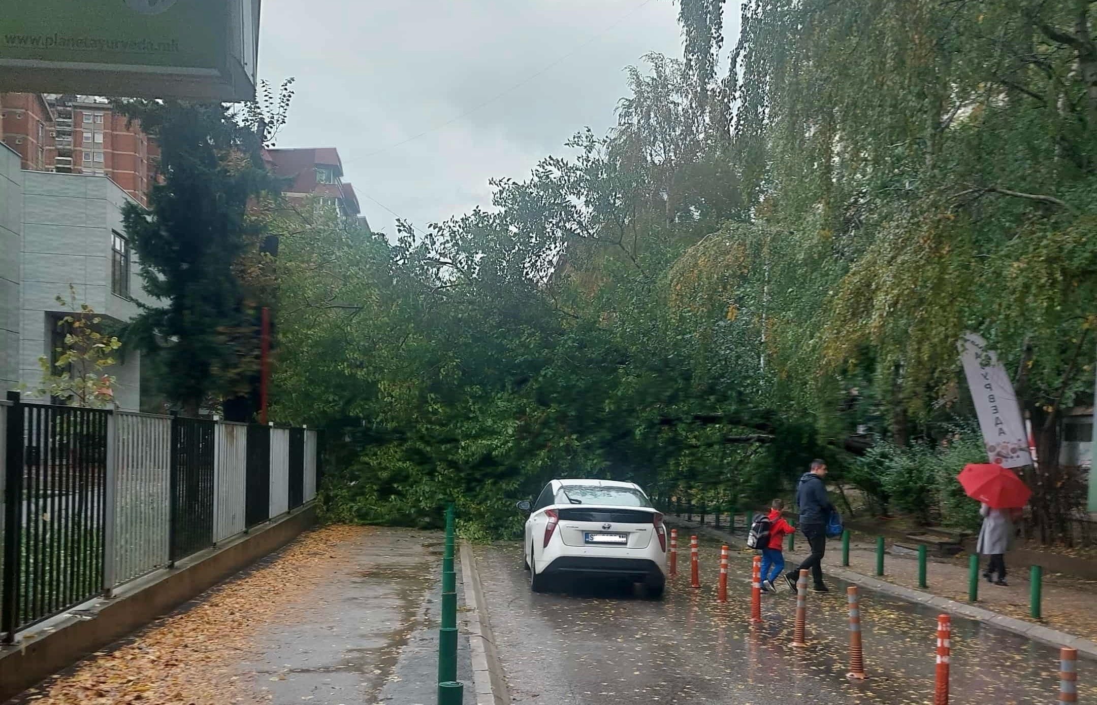 Паднато дрво го блокира влезот на ОУ „Киро Глигоров“ – учениците влегуваа од другата страна
