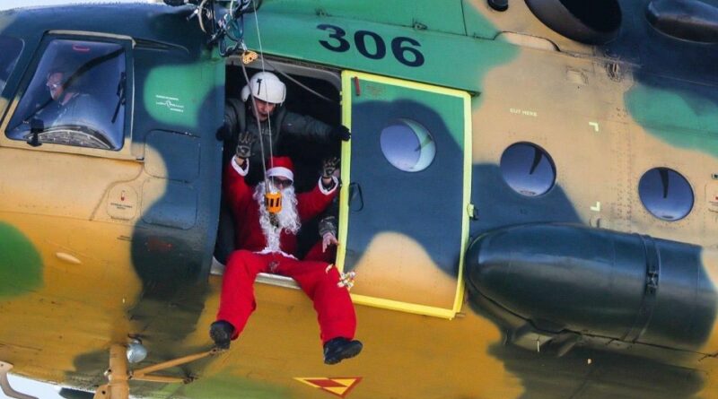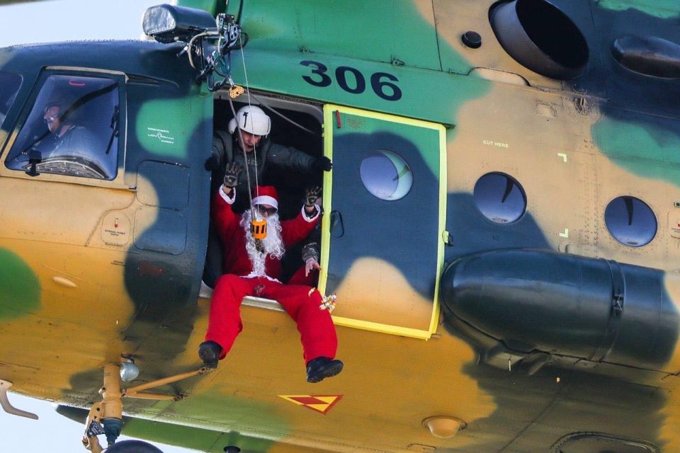 РАДОСТ ЗА ДЕЦАТА НА ПРИПАДНИЦИТЕ НА АРМИЈАТА Дедо Мраз се спушти со хеликоптер
