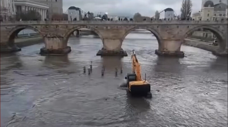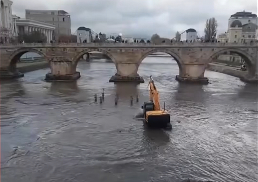 Екипа на 24 Инфо денеска забележа багер како влегува во коритото на реката Вардар, каде што се изведува чистење на насобраниот отпад и нанос, со што се подобрува протокот на водата и изгледот на самата река.