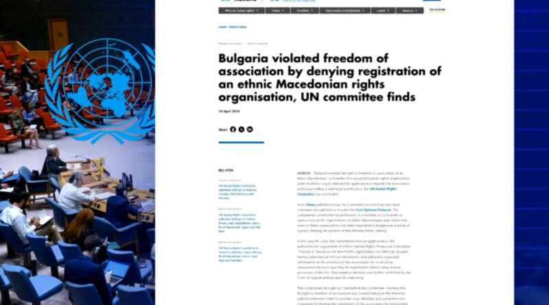 Бугарија одбива регистрација на македонски здруженија без правно објаснување. Комитетот за човекови права на ООН утврди дека Софија го прекршува